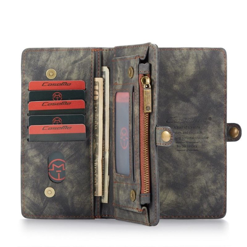 Dekselet har flere oppbevaringsrom og er ment å være en ekte lommebok som lar deg bære alle dine personlige eiendeler med deg på en sikker måte.