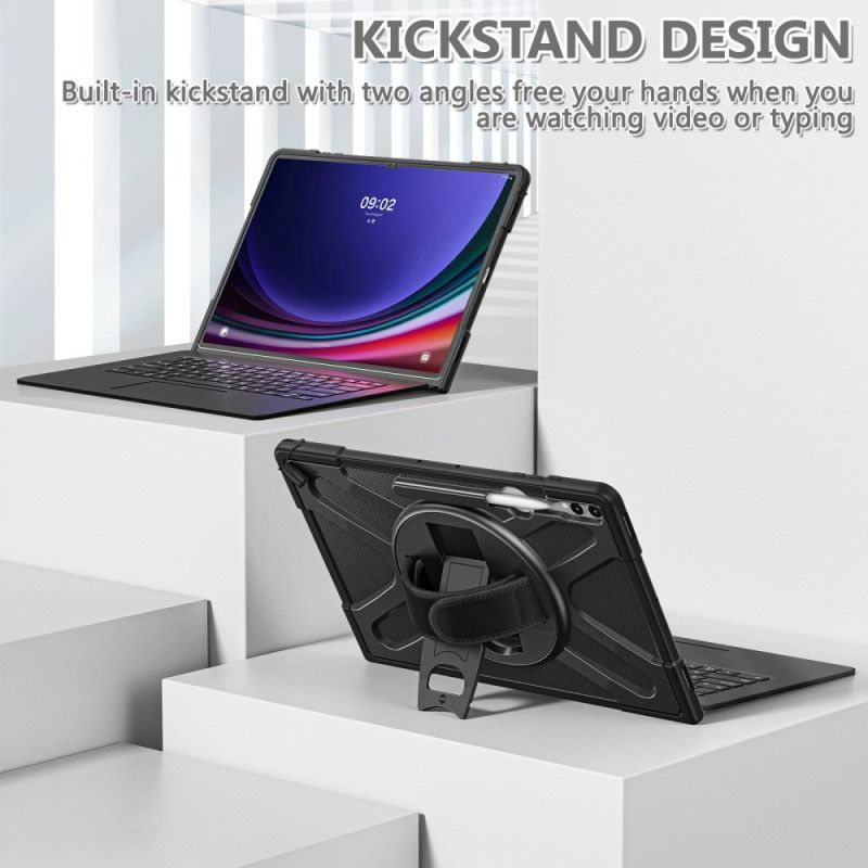 Dette Robuste, Støtbestandige Nettbrettdekselet Er Designet Spesielt For Samsung Galaxy Tab S8 Ultra X900 X906 Og Tab S9 Ultra Og En Praktisk Håndstropp.