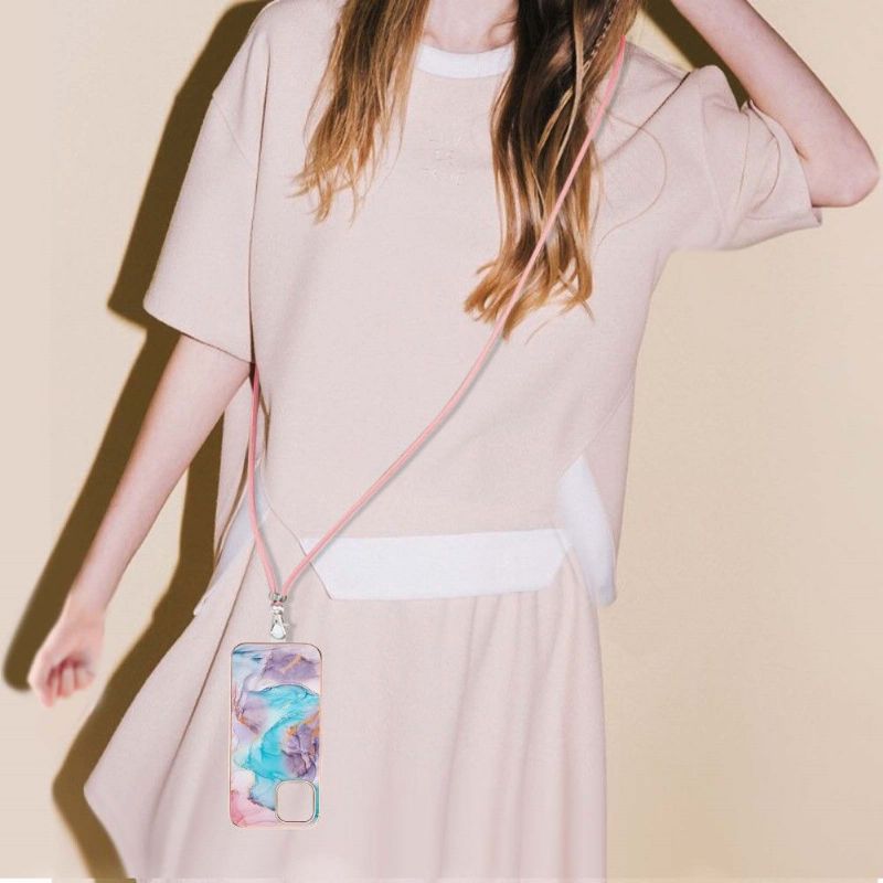 Deksel Til iPhone 13 Pro Med Snor Blåfarget Marmor