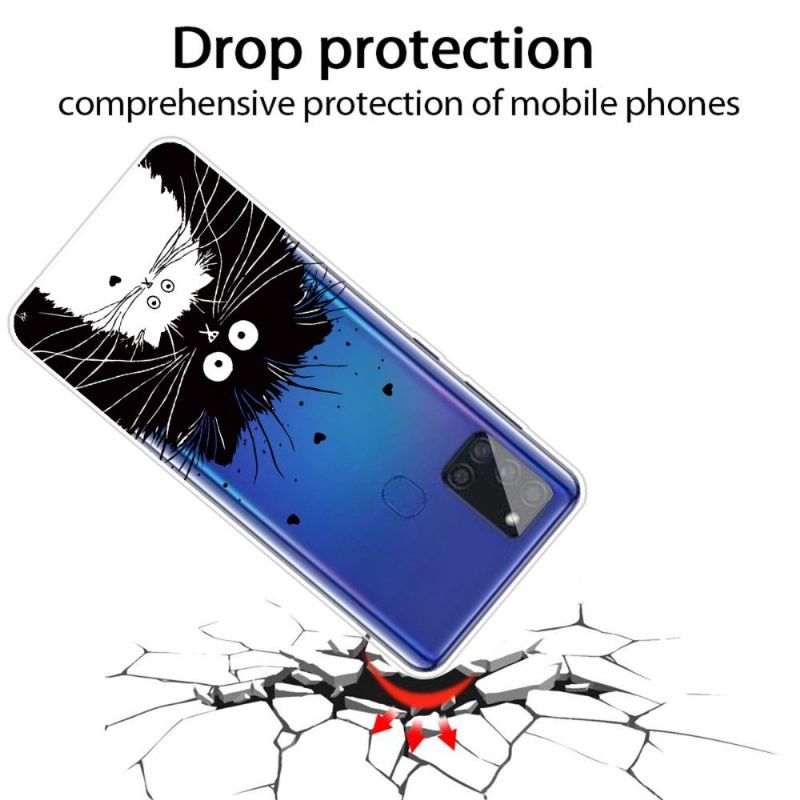 - Svart og hvitt kattedeksel for Samsung Galaxy A21s