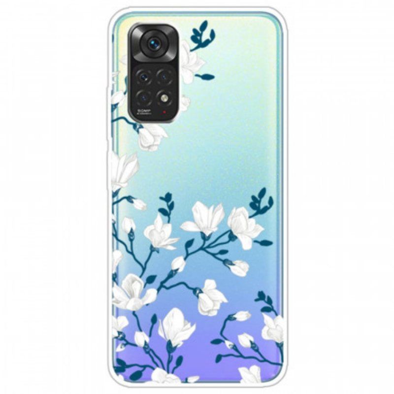 White Flowers-Dekselet, I Gjennomsiktig Silikon, Beskytter Xiaomi Redmi Note 11/11S Perfekt Og Viser Bare Blomstermønsteret.