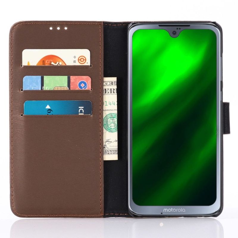 - Førsteklasses kunstskinnmateriale, den har et innvendig skall for å holde Moto G7