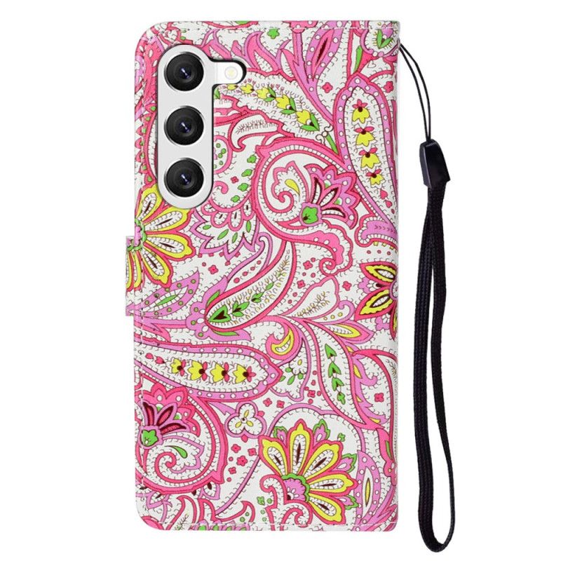 Folio Deksel Samsung Galaxy S24 5g Rosa Blomstermønster Med Stropp