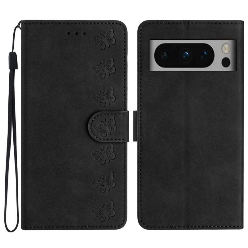 Lærdeksel Folio Deksel Google Pixel 8 Pro Mobildeksel Sommerfuglfrise Med Stropp