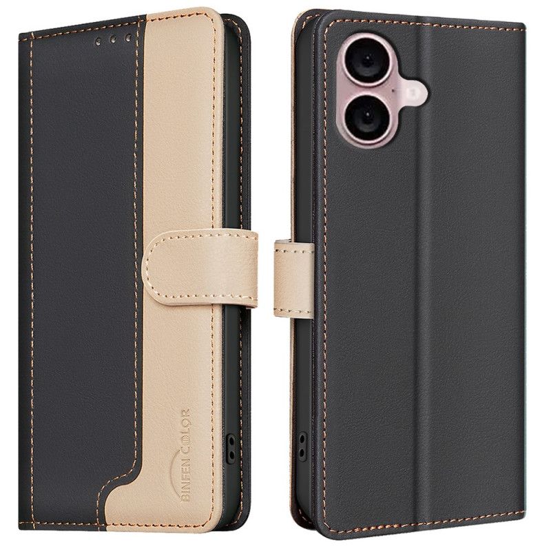 Lærdeksel Folio Deksel iPhone 16 Plus Mobildeksel Tofarget Rfid-blokkeringsteknologi Binfen Farge