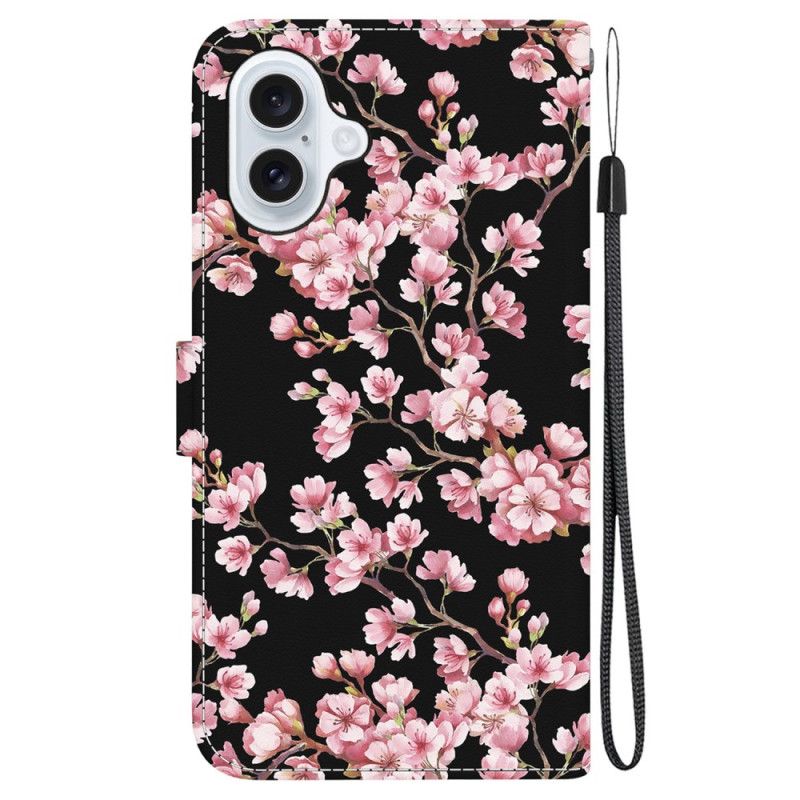 Lærdeksel Folio Deksel iPhone 16 Plus Strappede Plommeblomster